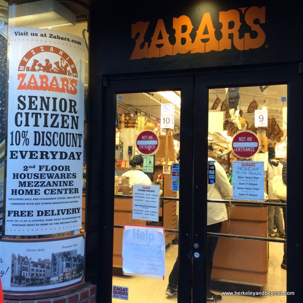 Zabar's 2245 Broadway/80th St., Upper West Side, (800) 697-6301, (212) 496-1234. This famous market is filled to the rafters with good stuff. Aisles are narrow, and rubbing shoulders with the other customers is de rigueur. Special counters are devoted to cheese, fish, and meat, plus there are deli items galore. The bagels are great, as is most everything. Don’t miss going upstairs to peruse the vast selection of kitchen items. I always wind up buying some small items I didn’t realize I needed—most recently a multi-colored set of measuring spoons and a tiny garlic grater—and this is where I bought my Bagel Biter, a much-loved and -used souvenir. Speaking of which, you will also find well-priced souvenirs with the Zabar logo—coffee mugs, pot holders, kitchen towels—as well as a 3-D New York cutting board.