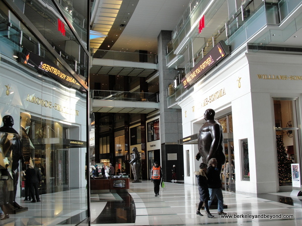 Time Warner Center/ The Shops at Columbus Circle 10 Columbus Circle, (212) 823-6300. Shopping here is primo, there is a gigantic Whole Foods in the basement, and you can spend the night at the swanky Mandarin Oriental hotel. And let’s not overlook the opportunity to browse the larger-than-life plump "Adam" and "Eve" bronze sculptures by artist Fernando Botero.