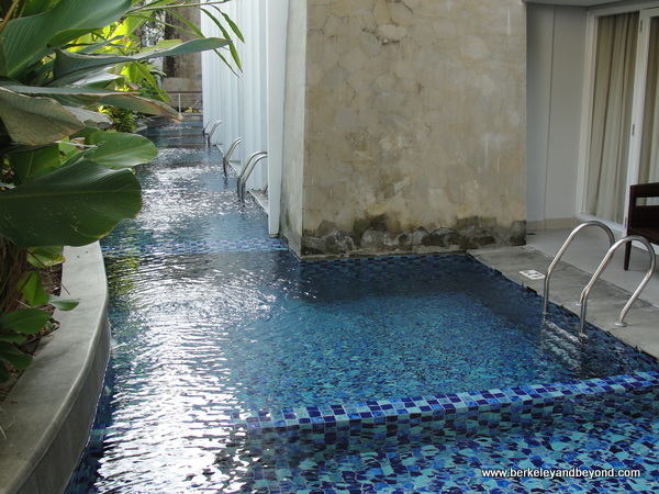 More lounge chairs await on the nearby beach, reachable by a 10-minute walk or free shuttle ride. I think the best guest rooms are those on the bottom floor with their own little shallow plunge pool right off the deck.