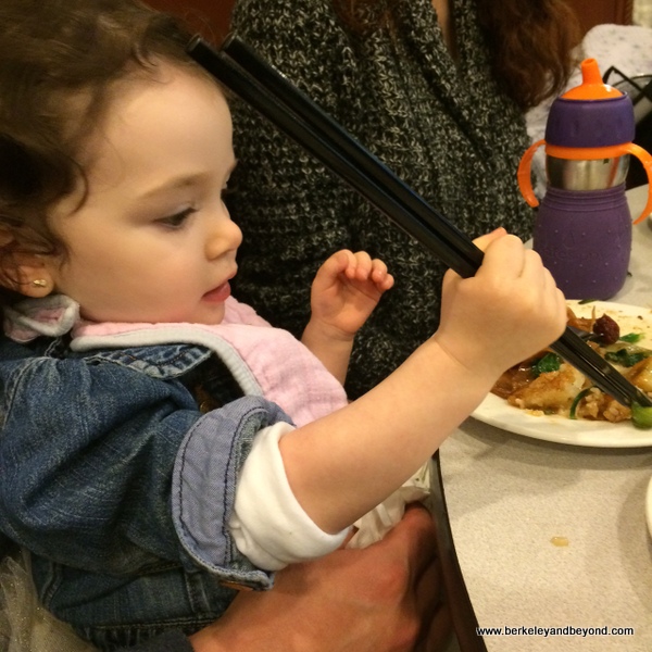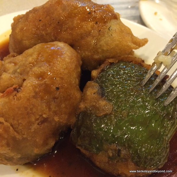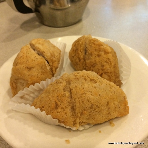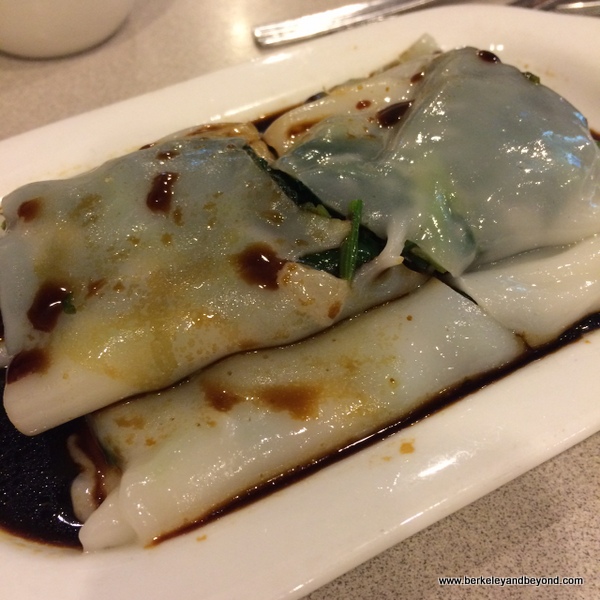 Finally seated, we ordered a head-spinning array of dim sum dishes. Everything we selected was delicious, and nothing was left over. Our hands-down favorite was the barbecue pork, which tasted so good and so meaty in texture that I was sure something hard I crunched down on was a bone. Of course it wasn’t, but I still wonder WHAT was it? Our tab for four adults and a child came to just over $50; it was so reasonable that we didn’t bother double-checking it, which we usually do.