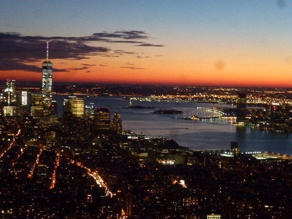 By chance, we chose an amazing time to visit here—5 p.m. on a Sunday, and a day after the second biggest snow storm in the history of NYC. Consequently there was absolutely NO line. We could tell that the line must generally be long, because it took us a good 10 minutes to “walk the line” to the elevator to take us to the 86th-floor viewpoint. It was a clear night, and there were perhaps 80 people viewing the sites. I am sure I wouldn’t have done this if I’d had to wait in a long line, but I definitely would have if CityPASS had taken me to the front. The normal admission charge is $30; $60 for skipping to the front of the line.