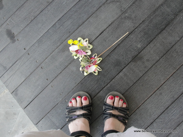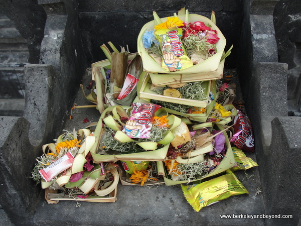 ●Almost every house and business has a shrine (or “pura”) tucked into a corner, often with an umbrella as a sign of respect. Fresh offerings of flowers and fruit are made daily. When you see this offering on the ground, it is meant to keep evil spirits away; try not to step on it. Statues are covered in black-and-white checked cloth to keep a balance between evil and good.