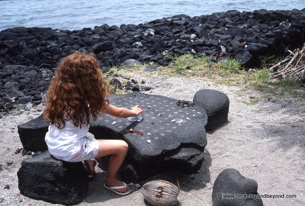 Pu’uhonua O Honaunau National Historical Park/City of Refuge In Honaunau, 1 hour south of Kailua-Kona, near Captain Cook, (808) 328-2326 x1702. 7am-15 min. after sunset; visitor center, daily 8:30am-4:30pm. $5/vehicle. No pets. Centuries ago this desolate, exquisitely beautiful spot was a place of refuge for criminals and outcasts escaping punishment or persecution. Now it offers the chance to learn a little history as you check out exhibits, which include a fishpond, several hale (houses), examples of traditional Hawaiian craftsmanship, and an unmortared stone wall that is 1,000-feet long, 10-feet high, and 17-feet wide. You might also see a Hawaiian canoe builder in action or view a traditional spear-throwing contest, and do allow time for a game of konane--a checkers-like game played on a stone table that kids enjoy trying out. Sea turtles are often seen swimming in the bay, and outrigger canoe rides are sometimes available.