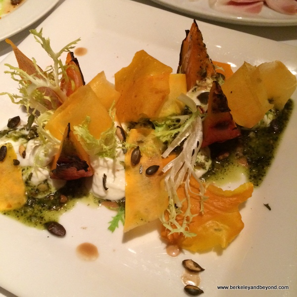 ● B&B Ristorante (702) 266-9977. When Mario Batalli cooks, people show up. In droves. This spot is usually packed to overflowing. Great wines are stocked from every region in Italy, but a relaxing cocktail can be delightful when you are finally seated. In my case it was a sweet one--Under the Maple Tree--made with Bulleit bourbon and maple syrup plus lemon and orange juices. My preset dinner appetizers included a variety of house-cured salami and pickles, grilled octopus with fagioli marinati and spicy limoncello vinaigrette, and an spectacular roasted kabocha squash with burrata and pumpkin-seed pesto. Whole wheat troffie pasta was perfectly al dente and tossed with butternut squash and more pumpkin-seed pesto. But I considered the roasted lamb leg with parsnips and purslane so undercooked as to be inedible. Since we were running late for a show, our vanilla gelati and pear sorbetti dolce was thoughtfully scooped into a paper cup for us to grab and go.