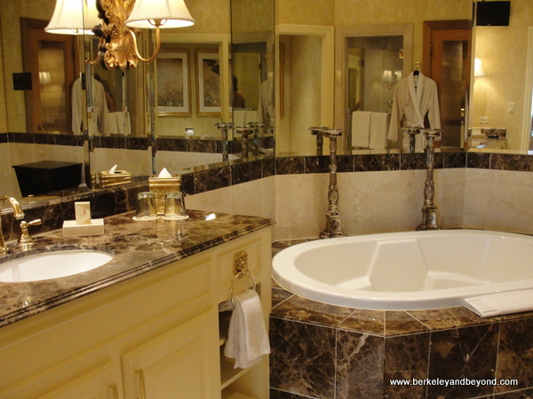 The Venetian 3355 S. Las Vegas Blvd., (877) 583-6423, (702) 414-1000. 4,028 suites. The last large themed casino to be built on the Strip, this Italian-themed all-suites hotel complex was built in the 1990s as a romantic gift to the owner’s wife. It is authentically Italian and now, with its new Palazzo tower, has 7,000 suites--and claims to have more convention space than San Francisco and Los Angeles combined! And, as is true everywhere, there are suites and then there are SUITES. In suites here, plenty of marble is used throughout, and the more exclusive suites have high ceilings and a private steam room, sauna, and oversize whirlpool tub. Some also have a screening room, pool table, walk-in closet, exercise room, and/or grand piano—for which arrangements can be made for someone to come up and play it. Dropped guest names include George Clooney, Ben Affleck, and George W (he stayed in the Presidential Suite when he was in office). Butler service is available, as is a private penthouse gaming club. Ordinary suites begin at $149and are spectacular, too, and each features a sunken living room. Once “The Phantom of the Opera” musical ran for about 10 years in a showroom modeled after the Paris Opera House. But times have changed. Now the draw is live music, and The Judds just opened in that same venue. Public facilities here include Canyon Ranch--the world’s largest day spa--and an array of big-name restaurants.