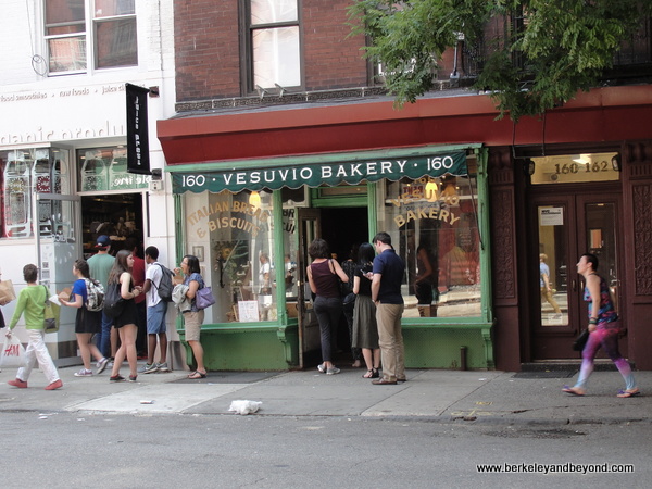 Birdbath Neighborhood Green Bakery is directly across the street at 190 Prince St. Operating within the old-time building that once was home to the Vesuvio Bakery, this bakery delivers bread by bicycle-powered rickshaws and gives customers who arrive by bike a discount. People line up to purchase giant chocolate-chip cookies (a vegan version is available) stacked in the window, pretzel croissants, and other delicious items from City Bakery. Grab-and-go light lunch items are also available; seating is limited.