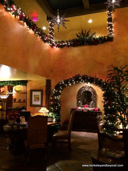 In December, when I visited, seasonal cheer includes countless red poinsettias and a two-story-high decorated tree.