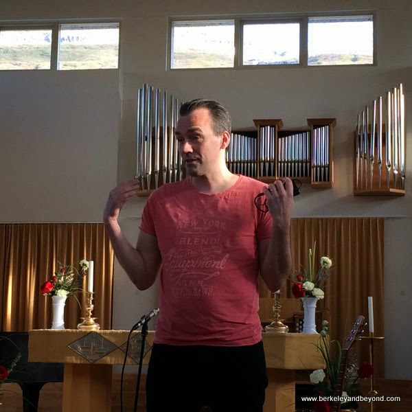 Our guide, 50-year-old local Bertlind, caught us by surprise with her unexpected, very attractive edgy hairdo. She told us that “the sun vanishes in November and we see it again in January.” And she told us again about the “sunshine pancakes” that folks in this remote area eat during those months to cheer themselves. By the end of our walk we had seen some of the 17 streams that run through this village and also a lot of trees, which was of special interest because Iceland is well known for having very few trees.