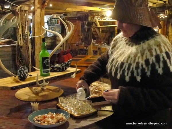 Randulff’s sea-house/Randulfssjohus Strandgata 96. L-D daily, June-Aug. Resembling a Norwegian herring house, this seafarers’ lodge has an informal museum upstairs where you can see rooms as they were left in 1890. We tasted Iceland’s infamous fermented shark—which is milder here than in Iceland’s west—as well as dried haddock. Both are still produced in town. We washed it down with a shot of Brennivin--Icelandic schnapps, which in the old days was called “black death.” I put the shark meat in my mouth and chewed it, but in the interest of not causing a volcanic eruption in my tummy I did not swallow it. The dried haddock was ok, and the Brennivin was good enough for me to buy some at the airport to take home.