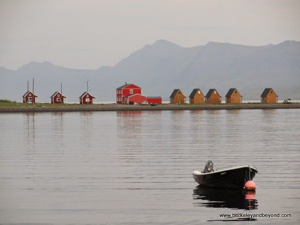 This spot fits into my ongoing interest in experiencing places that have an end-of-the-road, edge-of-the-world feeling. In addition to a regular bed, our A-frame red cabin had a loft with mattress on the floor that was reached by a ladder and which children would particularly adore. It was amazingly quiet in our fjord-front cabin, so quiet that we could hear the water lapping at the shore. The pleasant interiors are finished in baby knotty-pine wood. Facilities include a boat-shaped hot tub (called a “hot pot” here) and a sauna,