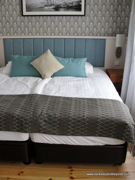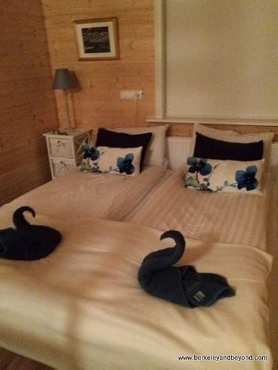 and towel swans greet you atop the European-style, pushed-together twin beds with individual duvets.