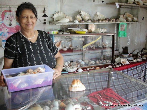 Inside, we met a lovely lady, Hootchnag, and her husband, whose name I did not get. Hootchnag told me they were shell experts and had been here for more than 30 years. Her son is the shell diver. The shell I fell in love with is a weighty bull mouth helmet. I keep it in my bathroom where it is a daily reminder of my visit to Fiji. I also selected a sea snail for my granddaughter and three humpback cowries--I keep one in my purse for good luck and gave the other two to my driver and to my traveling friend.