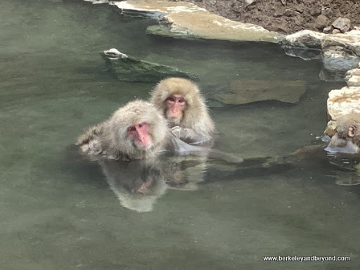 But this whole production is very small compared to other attractions--maybe 100 people and as many monkeys. The walk in takes around a half-hour, unless you are young and anxious. I enjoyed taking my time walking the wide dirt trail through tall trees, doing some serene forest bathing (this practice is known in Japan as shinrin-yoku). A small canal added water sounds at the beginning, but later the water sounds came from thermal streams seen rushing way down in a gorge. Depending on the season and weather, the trail can be muddy or slippery with snow and ice. Though snow is removed from the trails and anti-slip solvent is used, a waterproof boot is a good choice for footwear. In late fall I found it muddy in parts, but with no snow.