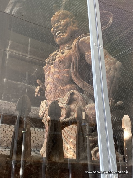 The temple approach leading up to the 19th-century Niomon Gate is lined with small restaurants and shops selling local specialties and souvenirs. This outer gate of the temple is guarded by a pair of fearsome Nio guardian figures.