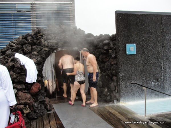 Everyone must shower in the changing area before getting into the lagoon and after as well, but you can probably get away with doing it in your bathing suit if it is crowded and you are quick. Minerals in the water include silica and sulphur, which are good for skin but bad for hair. I brought a shower cap, which isn’t very cute, but you can also purchase a swim cap at reception. If you don’t plan to go under water, you can get by with slathering on the complimentary conditioner provided in the shower area and leaving it in while you soak. I slathered and put my hair up in rubber bands, too, and it had no lasting issues. Do also look for the grey silica mask goo found on the side of the lagoon in wood boxes with ladles, and apply it liberally to your face for a deep cleaning and exfoliation. Water temperature varies around the pond, from mostly perfect to very hot or even lukewarm. The pool bottom is uneven, and sometimes I found myself up to my chin in hot water, especially in the center. Should you get tired of bathing, you can explore an area with a cave, a sauna, a steam room, and a massage waterfall. After, to avoid dry, brittle hair, wash your hair thoroughly with the provided silica purifying shampoo and use more conditioner.