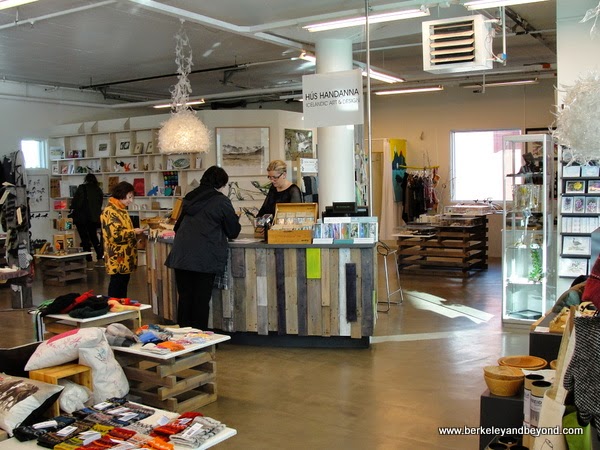 Hus Handanna Art & Design Midvangi 1-3, a few steps from hotel. This spacious shop purveys an array of top-notch Iclandic art and handcrafts that make wonderful souvenirs. Items include everything from colorful felted fingerless gloves to fragile ceramic tea-light containers. My favorite was the carved-wood reindeer mother and child that fit into each other