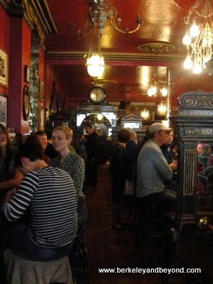 The Bank on College Green 20-22 College Green, Dublin 2, +353 (0)1 677 0677. B-L-D daily. Located in the oldest region of the city, this site has been occupied since Viking times. In 1892 the Belfast Bank acquired the property and constructed this grand Victorian building, whose Franco-Scottish exterior is one of Dublin’s rare examples of Scottish sandstone. The interior, which was once the main banking hall, is stunningly ornate, with a stained-glass ceiling, mosaic-tiled floors, and spectacular hand-carved plasterwork and cornicing. Huge Chatwood safes are now part of the decor, and the original vaults remain downstairs. Now, in the humongous open interior space of this sedate “superpub,” you can enjoy a relaxed meal and drink.