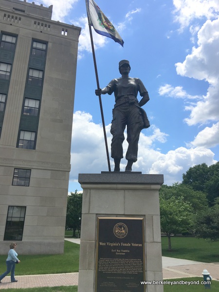 #6The “West Virginia’s Female Veteran” statue is also part of the West Virginia Veteran’s Memorial described in #6. The statue of the woman warrior was the last piece added to the memorial. It became controversial when the sculptor decided to depict the woman in fatigues. Female veterans wanted a statue showing a woman in dress uniform. To accommodate everyone, engraved copper plates around the base of the statue depict women in more formal dress.