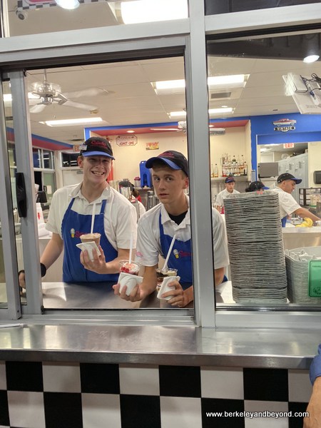 Caliches Frozen Custard 590 S. Valley Dr., (575) 647-5066. Daily. The story goes that the word “caliche" is a Spanish term describing a layer of calcium carbonate--or "natural cement"--that forms in the soil of semi-arid regions. And it is common to hear mid-western frozen custard places refer to their blended frozen custards as "concretes." Thus the name for this business was born. Looking like a cross between a fast-food spot and a spiffed-up diner, Caliche's is indeed a renovated burger joint but its fare is cold and sweet. Usually. Some items have chiles in the ingredients--like the Green Chile Sundae made with vanilla custard and green chile marmalade (it is quite tasty), though I would love to try the classic hot fudge sundae next time.