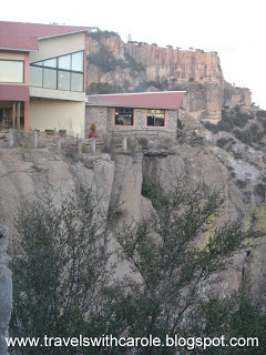 Posada Barrancas El Mirador 65 rooms. Perched at the canyon's edge, near its highest point, this atmospheric hotel overlooks spectacular Copper Canyon. It is surrounded by pine trees and appears to be carved into the rock itself. An outstanding lodging, its guest rooms have a ceiling with vegas topped by herringbone knotty pine planks, adobe-style walls, and a corner fireplace. Everyone gets a private canyon-view terrace and hot water. Bird watchers are in paradise--red-headed woodpeckers and a variety of humming birds are regular visitors. Tarahumara women weave their pre-hispanic-style baskets in front of this hotel and will make them to order.
