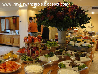 including fish from the Sea of Galilee, while Muscat Restaurant offers refined