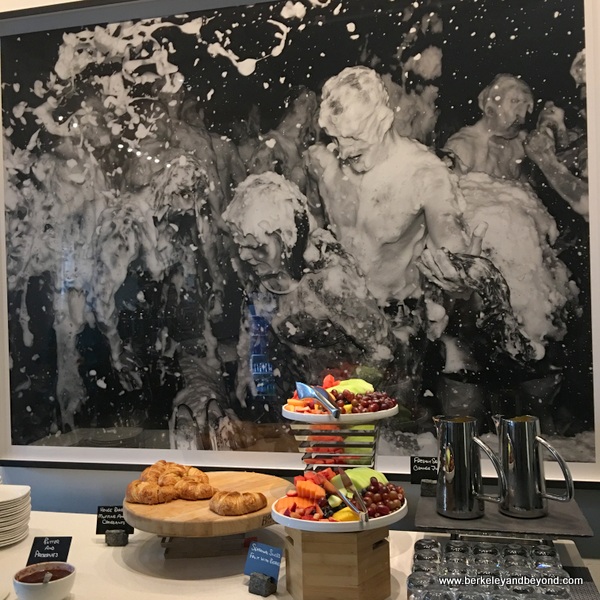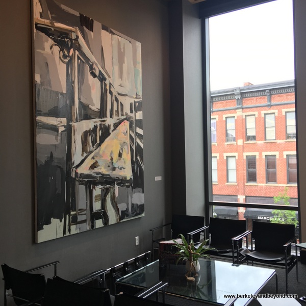 The Guild House 624 N. High St., (614) 280-9780. This sophisticated spot makes a good stop for breakfast as you start this artsy tour. It is located next door to the next stop, The Joseph hotel, for which it does food service. The restaurant is inside a vintage brick building and presents a relaxing atmosphere, with high ceilings, a woodsy decor, and comfortable seating. Some oversize paintings enhance the setting. A selection from a variety of smoothies and fresh juices is a good way to start. I enjoyed a classic eggs Benedict, while my companion enjoyed a colorful granola parfait.