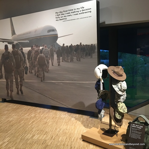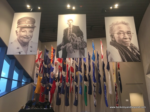 Surrounded by plenty of open space, this new museum building features dramatic architecture and is the focal point of the 7-acre site. A 2.5-acre Memorial Grove with 21 different species of tree provides a sanctuary for reflection and remembrance. Neither a war memorial nor a military museum, it is rather dedicated to sharing the stories of veterans through multi-media exhibits. The first floor features a dramatic Remembrance Gallery with a host of flags and gigantic photographs. Displays outline the history of various wars and serve both as a memorial and to honor the men and women who fought in them. The exhibits are oriented to oral history and provide many places to hear many stories. A Rooftop Sanctuary provides a spot to reflect and also to enjoy an exceptional city view.