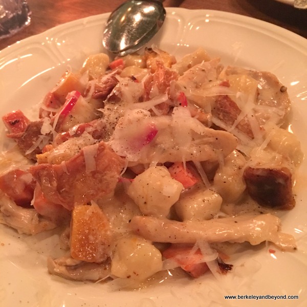I dined here with a group and we were presented with samplings of the menu. Indeed, the menu is mostly small and medium plates meant to be shared. Everything was delicious, but favorites included focaccias, a rather bizarre-but-tasty gnocchi with crispy chicken skin and squash, an apertivo tower, a burrata plate with roasted vegetables, and giant meatballs.