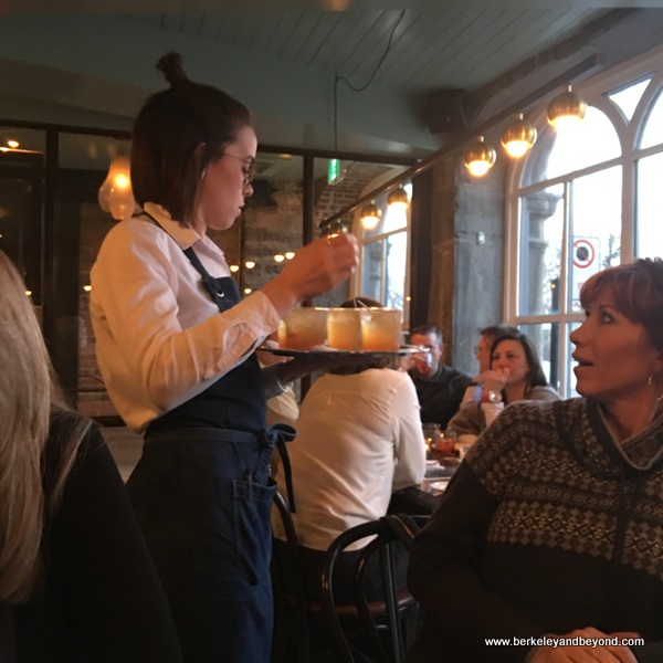 Located across from the St. Lawrence River, this is one of the newest restaurants in Old Montreal. The best way to begin a meal here is with a classic Negroni, or maybe a bubbly and colorful Aperol spritz. For a non-alcoholic winner, order up the strawberry-balsamic-basil drink. The cozy decor is actually brand new, but the menu is Old Italian with contemporary presentations.