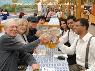 The fairgrounds holds 14 huge beer tents that each can seat about 6,000 people. Six of the tents are operated by the Munich breweries that provide all beer for Oktoberfest--Hacker Pschorr, Hofbräu, Paulaner, Spaten, Lowenbrau, and Augustiner. Beer is traditionally served in one-liter krugs (steins). An exception is Weissbier (wheat beer), which is usually served in tall, fluted half-liter glasses. Currently it costs about US$11 cash for one mas (liter) of beer. Each tent is a temporary structure, and each has its own unique character. Entry is free, and most tents feature food, music, and picnic tables and benches that fill quickly. Groups of two to three can usually squeeze in, but larger groups should reserve a table in advance or head for one of the smaller, less crowded tents. To learn more about the tents, visit www.oktoberfest.de/en/navitem/Beer+Tents