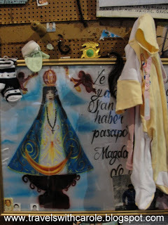 San Juan de los Lagos In the state of Jalisco, 2 hours/76 km NE of Guadalajara. Founded in the 1600s, this city is one of the most important pilgrimage centers in Mexico. The Shrine of Our Lady of San Juan de los Lagos is the second most visited religious site in Mexico, only after the Shrine of Our Lady of Guadalupe in Mexico City. For more than 3 centuries, millions of pilgrims have visited the Virgin here. The story begins in 1542, when a Spanish priest brought a statue of the Virgin of the Immaculate Conception to the village. In 1623, the sick daughter of a local Indians recovered after her parents prayed for her. Following this miracle, the statue began to be visited by pilgrims who walk on their knees to the Virgin's altar. I found the alcove to the right of the altar especially interesting--it is where pilgrims place letters and objects that thank the Virgin for their personal miracles.