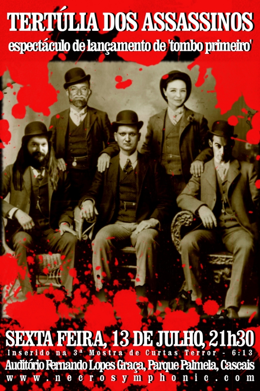Na próxima sexta-feira, dia 13, às 21H30, a Tertúlia dos Assassinos (combo de interpretação artística composto por Charles Sangnoir, Aires Ferreira, David Soares, Gilberto de Lascariz e Melusine de Mattos) irá dar o seu espectáculo de estreia no Auditório Fernando Lopes Graça, em Cascais (Parque Palmela). O disco/livro de estreia, produzido e musicado por Charles Sangnoir , e intitulado Tombo Prime iro , estará disponível para venda.