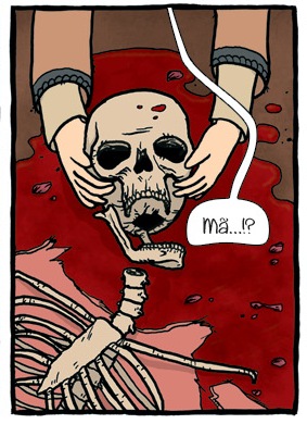 Um encontro imediato de 3º grau, no qual a carne desprende-se dos ossos.Em O Pequeno Deus Cego (Kingpin Books), escrito por mim e desenhado por Pedro Serpa.