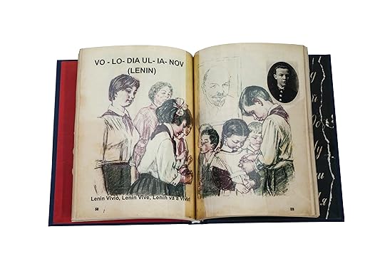 “Bukvar/ Essay of a protest.” Laser print from author’s first elementary school book (1978, DDR, URSS), historical images printed in laser on mylar plate.
