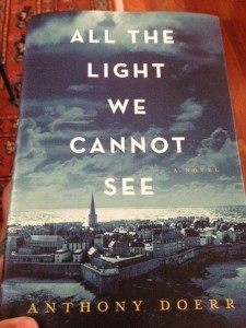 Well, no more. I delivered the revised manuscript to New York last week, and without the pressure of all those words bearing down on me, I have treated myself to ALL THE LIGHT WE CANNOT SEE, by Anthony Doerr. It’s a wonderful read. Set in France during World War II, it could not have been more in my proverbial wheelhouse. It’s a thrilling novel, gorgeously evocative, fantastically well-crafted, and beautifully paced. It’s selling by the truckload right now, and it’s easy to see why. I highly recommend it.