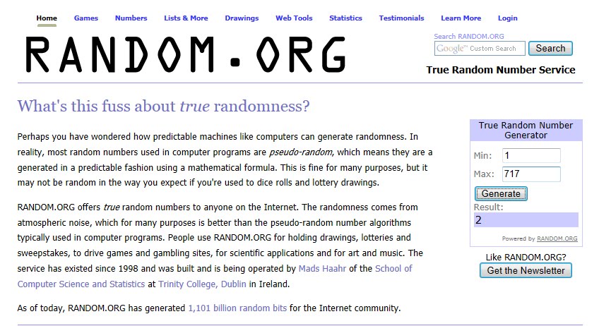 And who is this week's winner? Let's check the random number generator at Random.org....