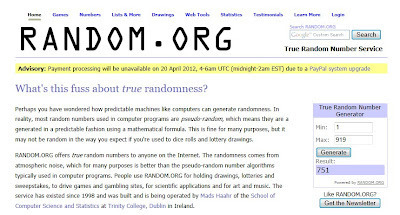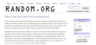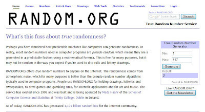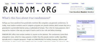I'm heading over to Random.org to plug in the numbers, and...