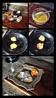 Mix two tablespoons of flour with a few drops of orange-flower water and a few grains of salt. Add the yolks of four eggs, well-beaten, and the whites of two. Fry by tablespoonfuls in butter, turning once, and sprinkling with sugar. Or, spread with Jelly, roll up, and sprinkle with powdered sugar.