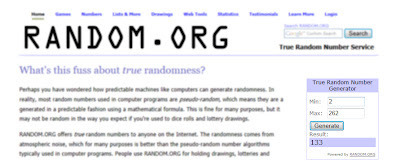 I'll plug the numbers into the Random.org random number generator ... and voila!