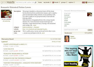 That was a year ago, and in that time the group has grown into a fun and lively group of 325 members. And it's a diverse group, made up of avid readers, book bloggers and authors. Besides its popular discussion board, the group also maintains a recommended reading bookshelf of Romantic Historical Fiction titles.