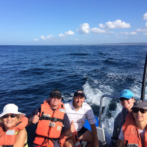 We saw some whales and dolphins in the Indian Ocean on this winter day. (at Scottburgh Beach)