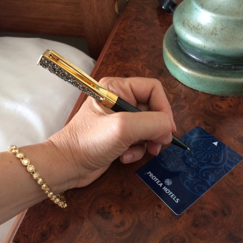 10 yr anniversary bling: crystal encrusted pen and bracelet. (at Durban, South Africa)