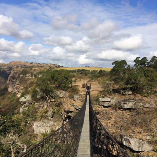 Crossing the bridge. (at Suspension Bridge At Oribi Gorge)