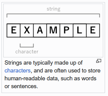 Wikipedia confesses: In computer programming, a string is traditionally a sequence of characters, either as a literal constant or as some kind of variable. The latter may allow its elements to be mutated and the length changed, or it may be fixed (after creation). A string is generally considered as a data type and is often implemented as an array data structure of bytes (or words) that stores a sequence of elements, typically characters, using some character encoding. String may also denote more general arrays or other sequence (or list) data types and structures . . . . A primary purpose of strings is to store human-readable text, like words and sentences. Strings are used to communicate information from a computer program to the user of the program. A program may also accept string input from its user. Further, strings may store data expressed as characters yet not intended for human reading . . . . Example strings and their purposes . . . Alphabetical data, like “AGATGCCGT” representing nucleic acid sequences of DNA . . .