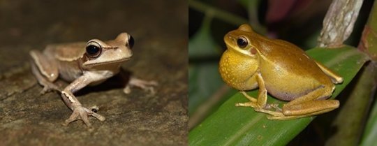 Adult female (left) and calling male of Boana prasina/Andrés Brunetti