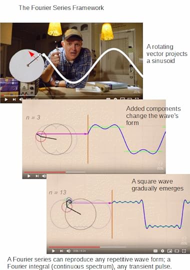 All of this then comes back to the Fourier analysis, as the video demonstrates by showing rotating vectors added up tip to tail to form complex wave forms. Which, then points to how we can move freely between the time domain and the frequency domain to better understand phenomena in the real world.