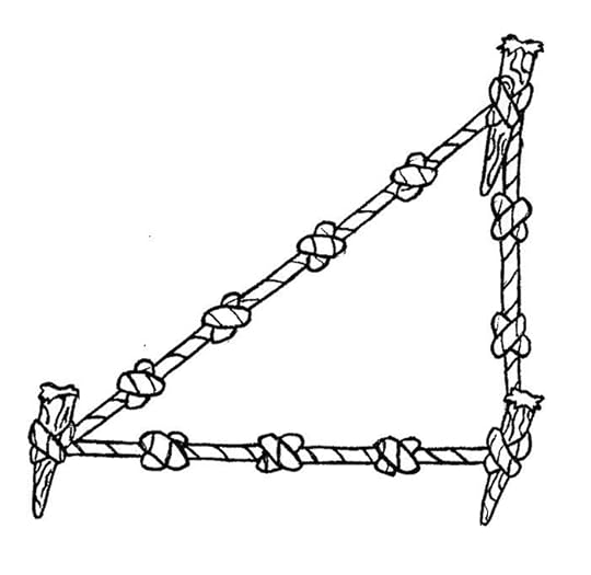 The Egyptian rope trick and the 3-4-5 Pythagorean triplet, thus a right angle forced through a numerical relationship (and note the power of the number twelve again):