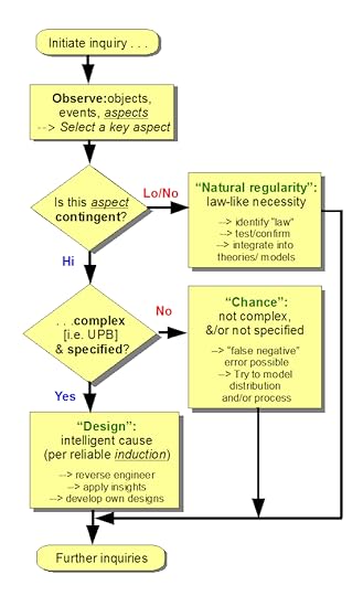 All of this of course feeds onwards into another categorisation of causal factors: mechanical necessity, chance/random factors, intelligently directed contingency. But, that discussion is for another day, save, that we can lay out an explanatory factor flowchart: