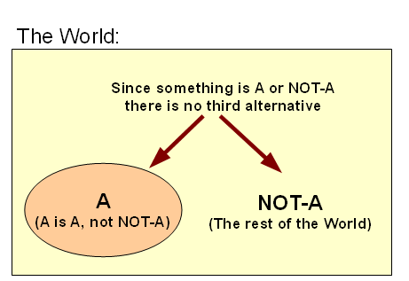 Let’s refresh our thinking, partitioning World W into A and ~A, W = {A|~A}, so that (physically or conceptually) A is A i/l/o its core defining characteristics, and no x in W is A AND also ~A in the same sense and circumstances, likewise any x in W will be A or else ~A, not neither nor both. That is, once a dichotomy of distinct identity occurs, it has consequences: