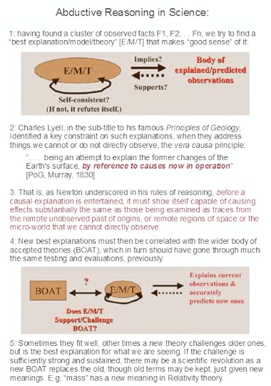 It also points to certain features of our world of life and the wider world of the physical cosmos being best explained on design, not blind chance and mechanical necessity.